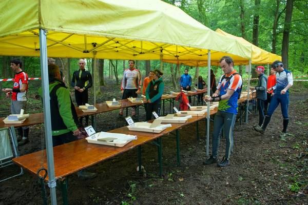 La mécanique de départ est toujours la même. Il y a un départ toutes les minutes. Tous les coureurs qui partent à la même heure (mais sur des circuits différents) rentrent dans un enchainement de sas de h-4mn jusqu'à l'heure de départ. Dans chaque sas on a un controle (vidage de puce, N° de puce, récupération des définitions...) tout ça jusqu'au dernier sas dans lequel on rentre une minute avant le départ. Chaque coureur vient se placer devant la carte de son circuit.