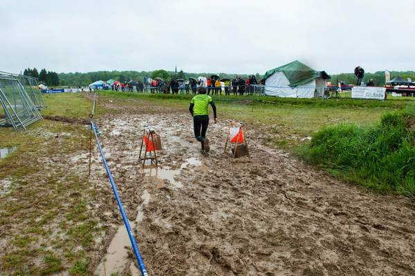 Entre temps la pluie s'est presque arrêtée. Je retourne sur la zone où sont les tentes des clubs, je dépose ma veste dans la tente et je me dirige vers le départ qui se trouve à un kilomètre de là. Ca me permet de m'échauffer un peu.