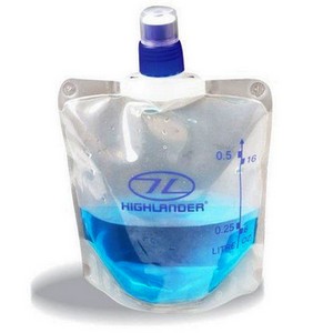 C'est une gourde souple de 50cl, graduée (pratique pour la popote...), qui, quand elle est vide ne prend aucune place, et qui, une fois remplie, peut même tenir debout seule (facile à poser) Autre gros atout, son poids, 25g seulement ! Donc en synthèse 2 bidons de 75cl sur chaque sangle du sac 1 gourde souple de 50cl en secours A chaque CP, je rempli mes bidons et je bois le reste de la bouteille soit une consommation de 1,5L par tranche de 15km L'eau gazeuse est elle un luxe ?