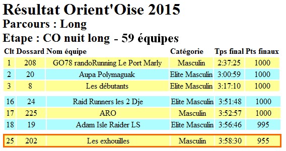 Tout comme en 2014, 2013 et 2012, c'est avec Christian que je retourne sur cette course au score nocturne de 4h00 (il y a aussi un circuit de 2h00) pour 60 balises à trouver