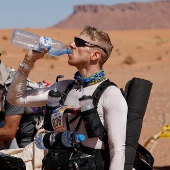 Avant de se poser la question de la pertinence de ces apports de sel et de la quantité à envisager, penchons nous simplement sur le rôle du sel dans le cadre d'une course comme le Marathon des sables. L'acclimatation Avant toutes choses, et lorsque c'est possible; l'idéal est de pouvoir bénéficier d'une période d'acclimatation. En général il faut compter entre 7 et 10 jours pour avoir un niveau d'acclimatation totalement efficace, mais des études ont montré qu'au bout de 3 jours il y a déjà des effets mesurables sur le volume de sudation, et donc sur le taux de minéraux dans la sueur. Pour le Marathon des Sables, on aura seulement 2 bonnes journées. Même si c'est toujours mieux que rien il est peu probable que cela impacte de façon significative notre physiologie ! La déshydratation Lorsqu'on participe à ce genre de course on a tendance à se déshydrater, entre autre en raison de la transpiration, mais pas seulement. Les urines ou certains troubles digestifs que l'on peut avoir lors de déplacements à l'étranger (diarrhées, vomissements,...) vont aussi participer à la déshydratation de l'organisme Pour éviter la surchauffe, le corps dissipe donc le surplus de chaleur surtout par la sueur, laquelle est composée, pour faire simple, à 99 % d’eau et à 1 % de sodium Le réflexe naturel est donc de boire pour se réhydrater. La sensation de soif pendant l’exercice indique une hydratation insuffisante : vous êtes déjà déshydraté. Donc il convient de boire avant la soif (que ce soit avant, pendant et après l’effort). Quels sont les principaux signes d’une déshydratation ? - La sensation de soif - L'élévation de la fréquence cardiaque - La chute des performance (fatigue, essoufflement, lourdeur des jambes…) S'asperger
