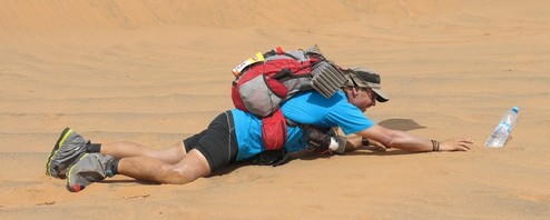 Bien sur, si on compare ça aux courses sur route, on sent tout de suite le contingentement, mais les raiders et les trailers, habitués à des épreuves en semi-autonomie, pourront parfois être surpris du nombre de ravitaillements sur une étape. Sur le MDS, l'eau est fournie en bouteilles de 1,5L, marquées avec le numéro de dossard du concurrent afin de s'assurer qu'aucun déchet n'est jeté hors des emplacements prévus Le règlement 2015 précise les quantités d'eau et les modalités d'attribution pour chaque concurrent Etape de liaison (étapes 1, 2, 3 et 6) : 10,5 litres par jour et par personne - 1,5 litre chaque matin avant le départ, - 2 ou 3 fois 1,5 litre sur l'axe du parcours, - 4,5 litres à l'arrivée d'étape. Etape Marathon (étape 5) : 12 litres par jour et par personne - 1,5 litre le matin avant le départ, - 1,5 litre aux CP 1 et 3 - 3 litres au CP 2, - 4,5 litres à l'arrivée d'étape. Etape non-stop (étape 4) : 22,5 litres pour 2 jours et par personne - 1,5 litre le matin avant le départ, - 1,5 litre aux CP 1, 3 et 6, - 1,5 litre ou 3 litres aux CP 2, 4 et 5, - 4,5 litres à l'arrivée de l'étape, - 4,5 litres au bivouac Par rapport à d'autres courses en milieu désertique où on est autonome sur 20 à 30 km, cela permet d'avoir un ravitaillement plus fréquent et du coup d'en porter un peu moins. A titre d'exemple, si on se base sur l'édition 2014, cela donne pour l'étape 1 qui faisait 34 km un total de 9 litres d'eau (1,5 départ + 1,5 CP1 + 1,5 CP2 + 4,5 arrivée). Tout ça pour une durée de course en milieu de peloton d'environ 6h30. Ca reste jouable Pour l'étape 2 qui elle faisait 41km et qui a été courue en environ 7h30 (toujours en milieu de peloton) on avait le droit à 10,5 litres d'eau (1 CP supplémentaire) Donc même si elle n'est pas surabondante, la quantité d'eau est quand même prévue pour couvrir les besoins des participants. Il reste les conditions exceptionnelles. Dans le désert, tout peut arriver et contrairement à ce qu'on pourrait penser, le plus dangereux n'est pas une élévation de la température, mais d'avantage une élévation du taux d'hygrométrie. Plus l'air est humide plus on va se déshydrater et donc avoir besoin de boire. J'en ai fait l'expérience en Amazonie où avec une température de 30° (pas très élevée) mais un taux d'humidité de plus de 95% je me suis retrouvé à sec (réserve d'eau totalement bue) et complètement déshydraté en moins de 20km. En 2006, de forts vents associés à une hygrométrie élevée a fait des ravages considérables dans le peloton multipliant les mises sous perfusions malgré une augmentation de la dotation en eau. Les organisateurs décident de réduire la distance de certaines des étapes. Le taux d'abandon a été deux fois supérieur aux autres années. Il reste la gestion des cas particuliers. Un coureur à sec ou ayant besoin de plus d’eau pour une raison ou une autre ne se verra jamais refuser une bouteille supplémentaire. Simplement si cela réponds à une situation dite « de confort », il y aura une pénalité (en temps) associée, comme décrit dans le règlement. "L'assistance hydrique exceptionnelle avec l'accord des commissaires de course ou sur avis médical (manque, perte d'eau ou fuite) entrainera 30 minutes de pénalité la première fois, une heure de pénalité la deuxième fois et la mise hors course la troisième fois." Pas d’inquiétude, personne n’est encore mort de soif au MDS. Il faut juste apprendre à bien gérer et ne pas hésiter à consommer ce qu’on vous donne sur le parcours. Les 4,5 litres de l’arrivée étant suffisants pour gérer le bivouac. L'eau, combien et comment ?
