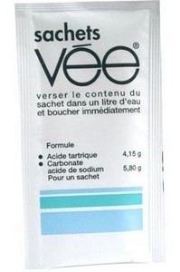Pour 1 sachet : • acide tartrique 4,15 g • carbonate acide de sodium 5,8 g Présentation : •VEE poudre sachet (ex lithiné) •Boîte carton de 30 sachets Tenir compte qu'un sachet (soit 1 litre) contient 1,588 g de sodium, correspondant à 4 g de chlorure de sodium. Côté budget, il faut compter une dizaine d'euros pour une boite de 30 sachets, soit environ 35cts d'euros/litre... Ce n'est pas ce poste là qui va entamer le budget ! Important ! Attention aux imitations. Certains peuvent essayer de vous faire prendre n'importe quoi pour des boissons reconstituantes, à partir du moment où elles sont en poudre. Si on vous propose ce sachet là, méfiez-vous ! ;-)