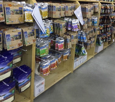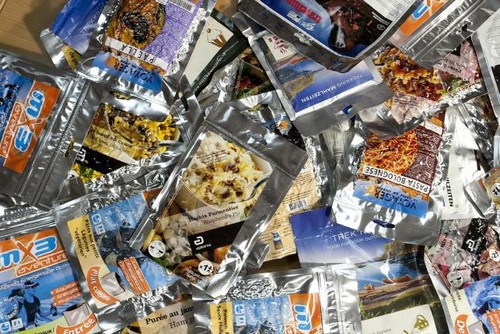 Entre l'image qu'on peut avoir d'un plat lyophilisé et son apparence et son goût réel, il y a souvent des différences, et en cas de grosse déception, une fois sur place vous ne pourrez pas vous dire "Beurk, il n'est pas bon, je vais manger autre chose !" Il y a une seconde raison à s'assurer du caractère agréable de ce que vous allez manger, c'est aussi pour éviter l'écoeurement sur la durée. Il y a des choses qu'on aime, mais à en répéter la consommation tous les jours pendant une semaine, ça peut parfois virer au cauchemar. Donc même si ce n'est pas indispensable, si vous avez la possibilité de varier votre alimentation, n'hésitez pas à le faire. Vous trouverez sur le net des tas de comparatifs produits. Si ceux-ci peuvent vous apporter un éclairage sur les aspects techniques (mode de réchauffage, durée, facilité d'usage,...), les avis qui portent sur la texture et le goût ne correspondront probablement à vos goûts. Où trouver les produits ? Là ça dépend de quoi on parle. Il y a deux grandes familles de produits à tester. D'un côté on a les plats et de l'autre tout le reste, que ce soit les desserts, les grignotage ou les en-cas. Pour les plats lyo, vous avez 2 possibilités. Vous avez un magasin qui en distribue près de chez vous et dans ce cas vous pouvez y faire une première sélection. On en trouve un peu dans les grandes enseignes sport, mais le choix peut être assez vite limité. Vous en trouverez aussi dans les magasins spécialisés dans le trekking, avec un choix souvent plus pointu, mais avec des produits pouvant présenter des packagings moins optimisés pour la course. Sur Paris un magasin comme Le Vieux Campeur dispose d'un rayon assez important.