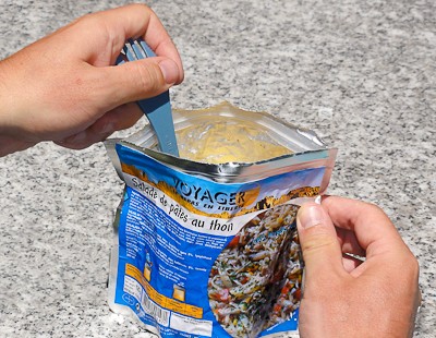 Les boutiques spécialisées et les boutiques en ligne restent valables, mais là comme on ne va pas se limiter à des produits spécifiquement faits pour le sport, on va pouvoir aller chercher ça absolument partout. Passer à l'acte Pour les plats : Testez en une dizaine pour commencer. Sur le lot il y en a forcément qui ne vous plairont pas et en fonction de votre stratégie d'alimentation, il faudra probablement soit en doublonner certains, soit en tester de nouveaux. Essayez de les tester chez vous à la place d'un repas. C'est important pour évaluer le caractère rassasiant du produit. Si vous le mangez chez vous, hors effort, et que vous avez encore faim après, demandez-vous ce que cela donnera après 8heures de course. Si vous le testez dans la journée entre les repas ou si vous goutez un peu de plusieurs produits en même temps, vous perdrez cette information. N'oubliez pas que ce sera probablement votre seul vrai repas de la journée ! Au delà de l'aspect gustatif, il faut profiter de ce test pour relever plusieurs éléments qui vous seront utile une fois en course. Faites vous un tableau dans lequel vous allez noter toutes ces informations. Si vous faites vos tests sur plusieurs semaines il sera difficile de se souvenir de tout à la fin. Soyez précis lorsque vous notez vos avis. Pour ma part voilà les informations avec lesquelles je fonctionne. - La Marque et le type de Plat : Pour bien identifier le produit. Des pâtes à la bolognaise, il y en a des dizaines ! - Le lieu d'achat et le prix : Ce sera utile pour passer la commande finale et pour comparer - Les informations nutritionnelles : Je relève particulièrement les Kcal et les glucides, mais surtout les Kcal/100g ce qui va faciliter les comparaisons. Sur ce point un bon niveau d'équilibre tourne autour des 400-450 Kcal/100g. En dessous, vous allez être obligé d'emporter plus de volume pour avoir les 2000 Kcal nécessaires pas jour, et au dessus, cela signifie en général que votre plat apportera essentiellement des graisses. - Le poids net du produit : C'est à dire le poids que vous aurez à porter une fois l'emballage alu enlevé. - Réhydratation à l'eau chaude ou froide : Si pour le plat principal du soir on s'appuie très souvent sur un plat chaud, pour un encas sur la piste ou pour le repas d'arrivée, il peut être intéressant de ne pas avoir à chauffer de l'eau. - Le volume d'eau nécessaire : Respectez-le à la lettre pour le test. Ensuite vous déciderez s'il faut en ajouter ou en enlever. Lorsque vous préparerez vos sachets, vous noterez dessus le volume d'eau et comme vous aurez gradué votre gamelle, vous retrouverez exactement la consistance que vous souhaitez. - Le temps de réhydratation : Testez avec le temps recommandé et goutez. Souvent il faut les laisser un peu plus longtemps, sachant que des produits comme le riz sont souvent plus difficiles à réhydrater. Ces temps varient de 3-4mn à plus de 20mn suivant les marques, sachant que la réhydratation à l'eau froide est souvent plus longue. Point d'attention. Soyez vigilant lorsque vous choisissez vos produits. Certains, comme par exemple les oeufs brouillés, demandent souvent à être cuits dans une poële après réhydratation... ce qui n'est pas facile à gérer en mode course. C'est comme ça qu'une fois je me suis retrouvé à boire une soupe d'oeufs brouillés pas cuits. Ca apporte bien les mêmes calories, mais franchement, ce n'est pace que j'ai mangé de meilleur dans le désert. A ces données techniques, vont venir s'ajouter votre ressenti perso. N'hésitez pas à noter un maximum de choses. Goût, odeur, texture, volume du plat, complément à apporter. Un plat de 80g peut présenter un volume satisfaisant pour un encas d'arrivée, mais il faudra peut être le renforcer ou le doubler pour en faire un plat du soir. Dernière information à noter. Je compte l'emporter ou pas ? Et si oui en tant que quoi ? Plat principal, encas ? Il y a des plats ou tout de suite on se dit "non, ca va pas le faire". J'ai eu ca avec un "boeuf chasseur aux pates" de chez Trek'n eat. Voilà ce que j'ai noté lors de la dégustation : "Réduire un peu le volume d'eau (480=>450ml), laisser infuser plus longtemps (10 grosses minutes). Plat copieux, beau volume pour le soir, bon rapport poids/calorie (100g/399Kcl) mais un gout de champignons beaucoup trop présent pour moi." Déjà à la maison, ce goût de champignon était trop fort pour moi, donc je me dit que sur le MDS dans les conditions de course, ca ne passera pas du tout. Pour d'autres, comme par exemple les pâtes à la bolognaise de chez Voyager, j'ai noté que le volume (80g) était bien en collation mais que je devais y ajouter du fromage (le parmesan râpé est très bien pour ça) et pour un hachis, j'ai prévu de le renforcer en viande (on trouve des sachets avec juste de la viande hachée déshydratée). Au fur et à mesure de mes tests je place les plats retenus dans les cases de ma liste d'alimentation. Pour les en-cas : N'hésitez pas à ratisser large. Beaucoup de sites permettent de commander les sticks, barres, gâteaux, à l'unité, ce qui est idéal pour tester. Globalement la méthode est la même mais les conditions de test sont plus simple car peu de choses sont à réhydrater. Appuyez plus particulièrement sur l'aspect pratique. Emballage, facilité d'usage, et surtout est-ce qu'ils vous laissent une impression de sec dans la bouche. Si ça vous le fait ici, imaginez par 40° D'ailleurs, pour ce que vous envisagez de consommer pendant la journée, tenez compte de la chaleur. Evitez par ce qui est trop chargé en chocolat (vous comprendrez quand votre barre aura passée 4h par plus de 40°) et gardez les pour le soir, et dites vous que certains gels qui passent bien par 15-20) deviennent impossible à avaler quand ils sont chaud (testé pour vos en Mauritanie). Avec tout ça vous devez pouvoir vous faire une idée précise de votre alimentation. Ensuite il restera l'
