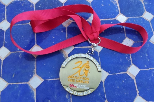 A peine passée la ligne d'arrivée de l'étape 6, voilà qu'on nous pousse fermement en direction des bus. Pas de répit, pas le temps d'aller déguster le traditionnel soda à la terrasse d'un café de Merzouga, il faut faire vite, comme si le temps nous était encore compté ! Avec le chevalier Bert on s'éloigne pour aller faire la photo du héros (mais si souvenez vous... fin de l'épisode IX). On traine 5mn puis on se décide à rentrer dans le rang pour aller chercher les fameux bus. C'est un peu le bazar pour remplir les bus, et la gestion des files d'attente nous vaudra une courte altercation avec des italiens mécontents... On monte dans les bus et là j'ai l'excellente idée de conserver mon sac à dos avec moi, alors que beaucoup de coureurs les mettent dans les soutes. Du coup, non seulement je peux utiliser mes bidons, plus pratiques que les bouteilles, mais surtout j'ai ma tenue de bivouac, ce qui fait que je vais pouvoir me changer entièrement et voyager dans de meilleures conditions. Cuissard, tee shirt sec et surtout mes tongs. Je remets toute la tenue de course dans le sac à dos et le tour est joué. On est parti pour 6 à 7 heures de route en direction de Ouarzazate. Je vous laisse imaginer l'odeur qui peut régner dans un bus fermé, chargé de 50 personnes qui viennent de passer une semaine à courir dans le désert sans pouvoir se laver. Essayez d'imaginer. Au bout de 2heures de route petite pause déjeuner. On a le droit au même panier repas qu'à l'aller, mais étrangement, aujourd'hui, il est 10 fois meilleur qu'à l'aller, et surtout le pain marocain. On a le droit à une grosse séance de troc avec les foxy fennec. Je te donne mes pruneaux, tu me donnes tes cacahuètes,... Et au final tout ce qui reste est regroupé dans un grand sac plastique tendu par un gamin du village voisin. Il remporte de quoi manger pendant deux semaines ! Retour dans le bus, et c'est reparti pour quelques longues heures de route. Pendant le trajet on va avoir le droit à un sketch. On nous fait circuler une liste papier avec des noms d'hôtels et des n° de dossards. Le but est de chercher dans cette liste (format word) notre numéro de dossard pour savoir dans quel hôtel on est à Ouarzazate. Gérer l'affectation de 700 coureurs sur 5 ou 6 hôtels n'est pas très compliqué à priori (les 500 autres coureurs, les anglo saxons étant pris en charge par leur propre organisation), et bien détrompez vous ! A l'inscription on nous a demandé avec qui on voulait partager notre chambre. Bon moi je dois être avec Bert, et coup de chance, on est dans le même hôtel, mais pour beaucoup d'autres ce n'est pas le cas, y compris des couples dont le mari est dans un hôtel et le femme dans l'autre. Il va falloir pas mal de temps avant qu'on se décide à ne de ne pas tenir compte des affectations et qu'on nous dise que de nouvelles listes seront fournies plus tard. [Mode des top des des flop ON] FLOP : la gestion des affectations d'hôtels. C'est pourtant basic. Un tableau excel, 350 lignes, 2 noms par ligne. [Mode des top des des flop OFF] Je profite de la suite du voyage pour faire un petit somme, ce qui fait que la route passe plus vite. Fin de journée... On débarque à Ouarzazate. Le cas des hôtels n'est toujours pas totalement réglé, du coup cela va se traiter à la descente du bus... Facile quand tout le monde arrive en même temps ! On récupère nos valises (celle que nous avions abandonné le premier jour), puis on remonte dans un bus qui doit nous conduire enfin à l'hôtel. Nous sommes toujours ensemble avec Bert' (un vrai p'tit couple désormais) et seul l'hôtel d'arrivée a changé, ce qui n'est pas grave puisqu'on n'en connaissait aucun. Une fois sur place bonne surprise. Au lieu de chambre en demis sous-sol comme ont pu en avoir les chevalliers Foued et William, on a le droit à une chambre luxe (par la taille) avec terrasse. Autre avantage, comme on n'est pas loin de l'accueil, on capte me wifi directement dans la chambre. Ca peut sembler anodin, mais essayer de poser a question à Bert ! On s'installe et là c'est l'opération de vérité. Douche non stop et soin des pieds. Une remise à neuf qui complétée par un vrais repas avec de la bière va nous permettre d'envisager une douce nuit dans un vrai lit. Ah oui, petite surprise. Quand je récupère ma valise, pas de chance, le système de verrouillage est bloqué. Heureusement que l'équipe de maintenance de l'hôtel est habituée à gérer ça à grand coup de pince coupante, sinon je rentrais à Paris en tenue de course. Samedi 11 avril 2015, 08h00 heure du Maroc Depuis hier on est revenu à l'heure locale et non plus à l'heure GMT qui s'appliquait sur le bivouac. Aujourd'hui, c'est journée de repos. Pour certains, c'est l'occasion de prendre la direction des soins avec une infirmerie installée dans l'hôtel qui sert de PC à l'organisation. Pour ma part, après avoir fait un bon bain de pieds à la bétadine hier et soigné mes 3 petites ampoules, pour le reste tout va bien.