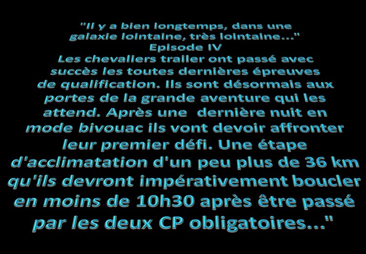 Notre première bataille fera 36,2km, à condition de bien suivre le balisage en ligne droite, avec une durée maximum de 10h30. Elle se découpe en 3 tronçons de 13,4 - 11,4 et 11,4 km. Il y aura donc 2 CP avec 1 bouteille d'eau au CP1, 2 bouteilles d'eau au CP2 et les traditionnelles 3 bouteilles d'eau à l'arrivée de l'étape.