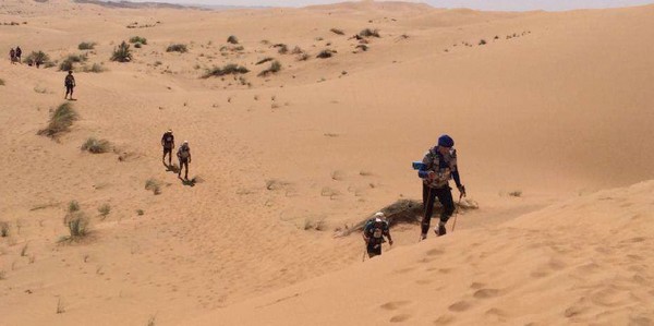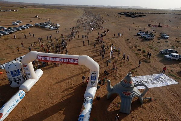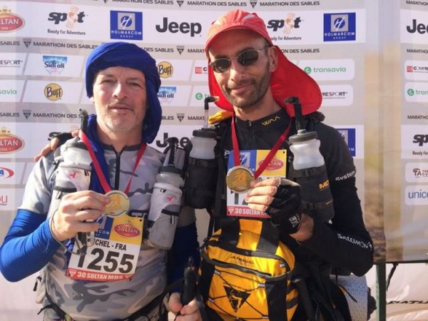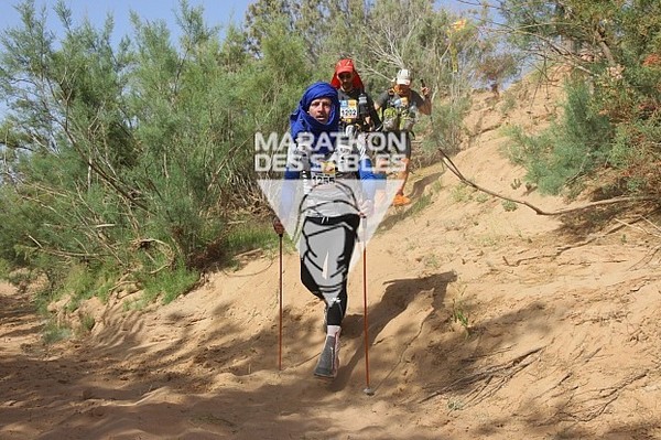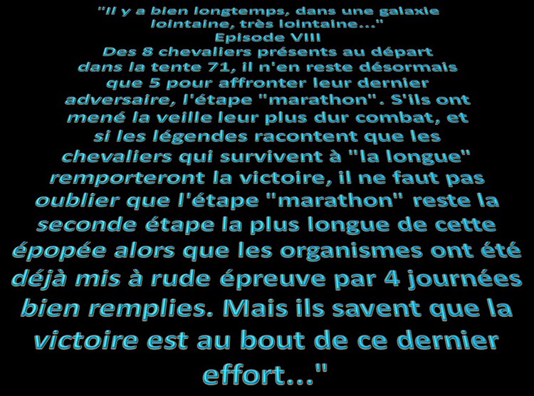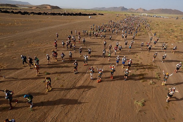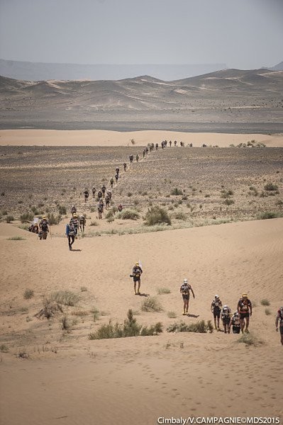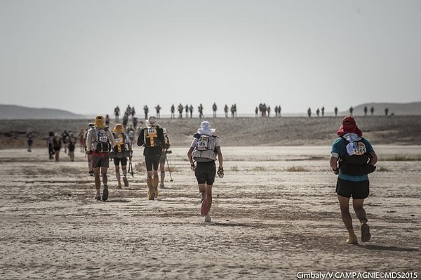 Fin de l'épisode VII "Je m'installe le plus confortablement possible en essayant de me protéger du vent le mieux possible et je me lance dans une nouvelle nuit que j'espère récupératrice" Malheureusement cette nuit là sera tout sauf calme. Le vent encore et encore mais cette fois les tentes n'y résisteront pas. Malgré plusieurs tentatives pour limiter la prise au vent, elle finira par nous tomber sur la tête pendant la nuit. Que faire ? Rien ! Au moins quand elle est étalée sur nous, on est protégé du vent, alors je ne bouge pas de mon sac de couchage et je fini ma nuit comme ça... Comme les autres chevaliers trailer. Vendredi 10 avril 2015, calendrier local - 05h00 GMT Finalement le réveil se fera de la même façon que les autres jours. Tranquille, reposé, on remet la tente un peu plus verticale, et on reprend les activités matinales. Petit déjeuner, préparation du sac qui est maintenant vraiment léger, récupération de l'eau... la routine quoi ! Aujourd'hui ce n'est pas n'importe quelle étape, c'est l'étape marathon. Ca parait simple un marathon, mais il ne faut pas oublier que juste derrière l'étape longue, cette étape sera la seconde plus longue de la course. Par contre par habitude c'est généralement une étape dite "roulante" Seconde particularité, c'est que cette étape marquera la fin de la course officielle, la 6ème étape étant désormais une sorte de ni-ni. Un No man's land avec une étape chronométrée mais non prise en compte dans le classement ! On en reparlera demain. Il y aura aujourd'hui 3 CP à valider avant d'aller sur l'arrivée, et cette année, le départ se fera, comme pour la longue, en 2 vagues. D'abord le gros du peloton (qui a dit que j'étais gros ?), puis les 200 premiers au classement général qui partiront 1h30 derrière nous.