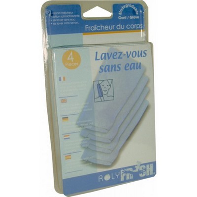 Les lingettes pour le corps... Ca peut s'avérer pratique, mais il faut trouver un conditionnement qui permette d'en avoir assez pour effectuer un nettoyage global. Sinon, il est possible d'en prendre quelques unes en appoint, ça peut toujours être utile. Le gant pré-imprégné sans eau.