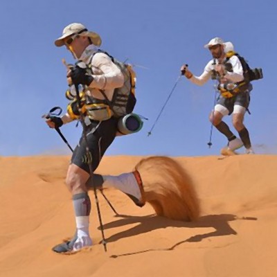 Oui dans les dunes on trouve de tout... Je ne parle pas du phénomène qui va venir faire tout le MDS en crocs ou en sandale kenyane, mais bien des coureurs qui, dans les longs passages sableux troquent leurs chaussures de trail contre un modèle utlra léger et adapté au sable. Cela peut faire sourire mais l'idée est bien moins saugrenue qu'elle n'y parait. Cela nécessite juste de savoir à l'avance s'il y aura de longs passages dunaires et où ils se trouvent.