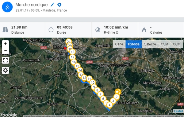 on gère au mieux ces premiers kilomètres, avec un long faux plat montant. puis progressivement la densité de marcheur se réduit et on peut enfin gérer notre allure. Il faut dire qu'il y a aussi avec nous des marcheurs du 54 (et probablement du 39).