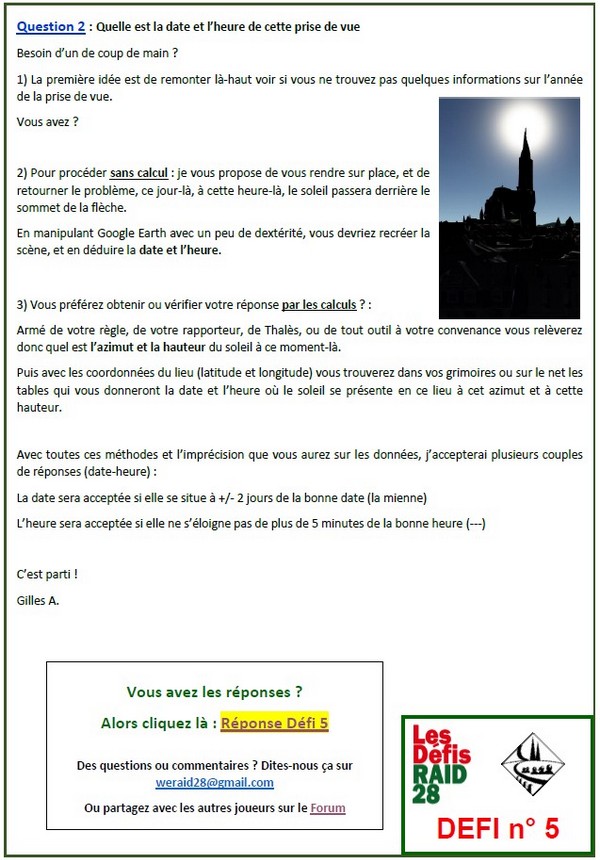 Sur le second défi, je me doutais que mon calcul avait peu de chances d'être bon... Et en lisant les pages de réponse ci après, je confirme que j'étais à 760km de la bonne méthode