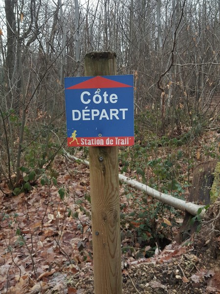 Pour aller sur la 19 il y a plusieurs choix, donc celui d'aller chercher les sentiers dans le dévers dès la fin du viaduc. Pour ma part je préfère rester sur le chemin principal le plus longtemps possible et lorsque le sentier se rapproche, je descends droit dans la pente. De là je progresse sur le sentier jusqu'à l'intersection et la balise.
