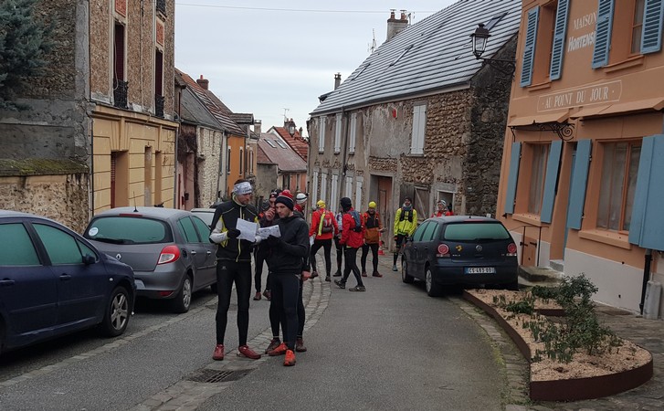 Reprise du tracé, retour dans le centre du village avec pas mal d'équipes en train de légèrement jardiner... C'est là que je retrouve Steph et son équipe venus chasser les balises également