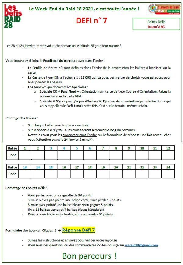 Septième défi qui va nous replonger dans le Raid 28 canal historique et qui peut rapporter 85 points + 10 points si celui-ci est réalisé pendant le WE durant lequel le Raid28 devait se tenir.