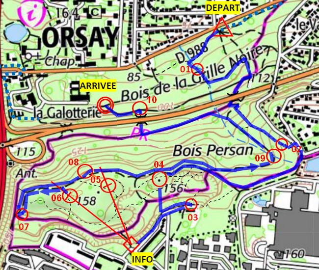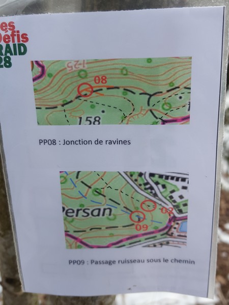 Je reporte ça sur la carte, avec une approximation car si l'échelle de 1/10.000 est indiquée sur la carte, je ne suis pas certain que l'impression respecte exactement l'échelle et contrairement aux carte de CO, il n'y a aucune échelle de repère sur cette carte