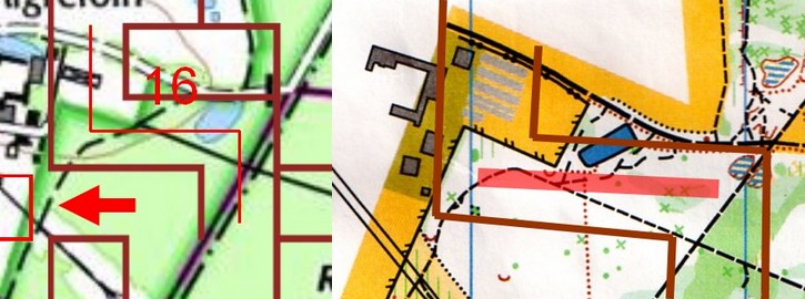 Pour PP16 c'est un peu plus compliqué, car même si elle est bien en place, nous n'avons aucune définition pour trouver cette balise, et surtout la carte IGN est fausse, le petit étang n'étant pas situé au bon endroit ! J'ai donc refait l'exercide de tracer le couloir de la spéciale mais cette fois sur une ancienne carte de CO qui est beaucoup plus juste