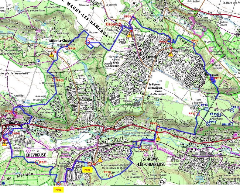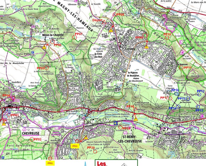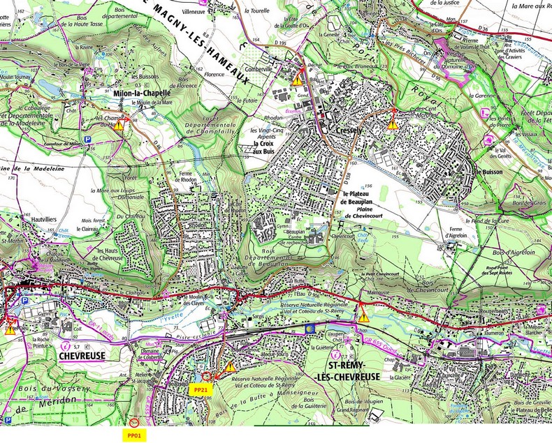 Direction PP05. Je fais le tour du château, et je pars chercher la route puis le chemin qui part en direction des Hauts de ChevreuseDe là je remonte jusqu'à PP05 facilement