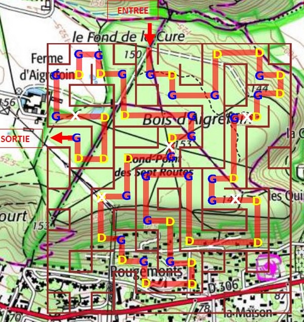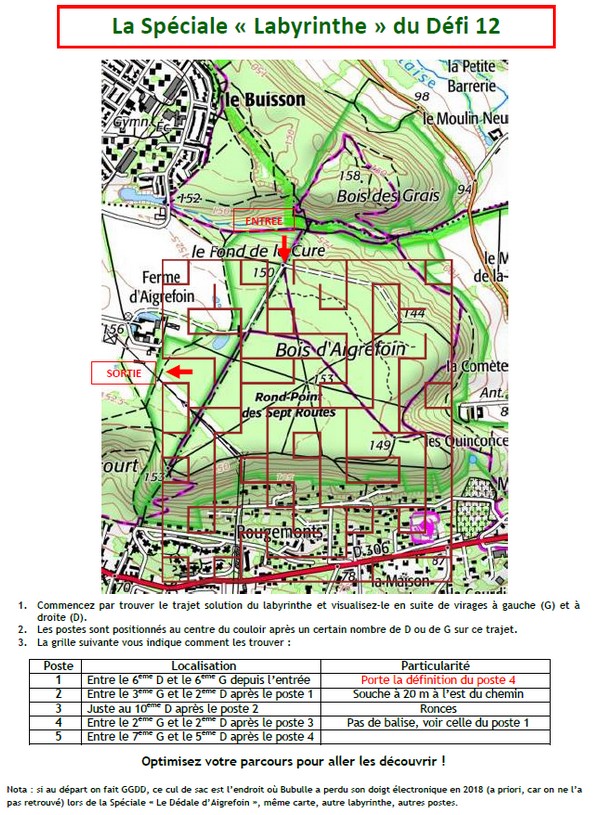 En fait pour les positionner de façon plus précise, j'ai tracé sur la carte de la spéciale le parcours du labyrinthe et j'ai undiqué le sens des virages (G ou D). Tout cela m'a permis de positionner les balises sur la bonne section.