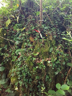 Pour la PP02, on va rejoindre le GR jusqu'au moment où il arrive dans le fond du vallon. Là la butte faite par l'aqueduc enterré est bien visible et la recherche pour trouver le regard où se situe la balise est rapide