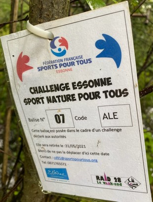 La balise fait DING... Cool, et un peu plus loin, sur le bord de la mare on trouve une balise. C'est étrange, car c'est une balise différente de celle des autres défis, mais, comme il y a dessus un logo du raid 28 on ne se pose pas de question et c'est forcément la bonne balise (impossible d'imaginer que les organisateurs puissent venir poser de fausses vraies balises). Et pourtant, c'est bien une balise destinée à une autre course... Dommage pour ce loupé. Une petite info des organisateurs sur le fait qu'il existait 2 types de balises marquées RAID28 aurait été bienvenu...
