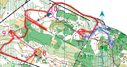 PP11 - Cours d'eau : Une fois encore on décide de sécuriser l'interposte en contournant par les chemins. De la mare on récupère le chemin au nord-est puis on va le suivre jusqu'à la grande intersection de sentiers. Là on remonte sud-ouest un peu après la borne et... OK j'avoue on a un peu jardiné pour arriver sur la balise. Mal calé, on la trouve mais pas là où je pensais qu'elle était. Mais on la trouve quand même :D