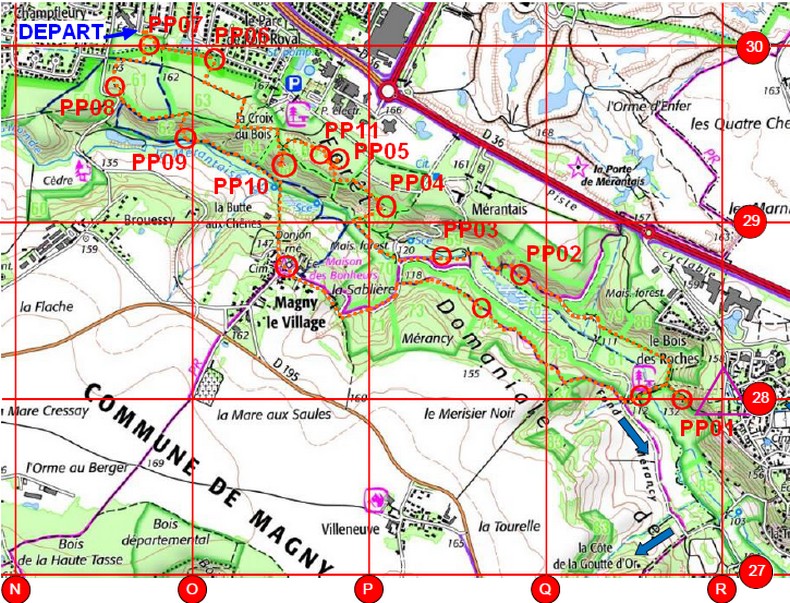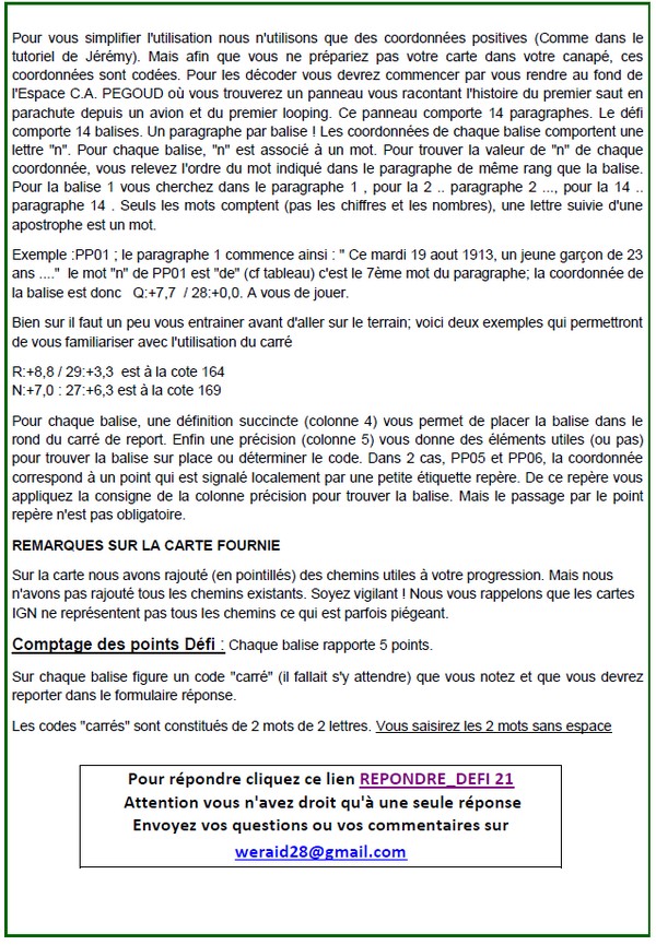 Pour ce défi, je décide d'y aller un peu au culot, c'est à dire sans passer par la case "point de départ" pour récupérer les codes manquants pour le report. J'ai essayé de faire un report en imaginant les options possibles pour les codes manquants et je suis arrivé à positionner les balises sur des points remarquables.