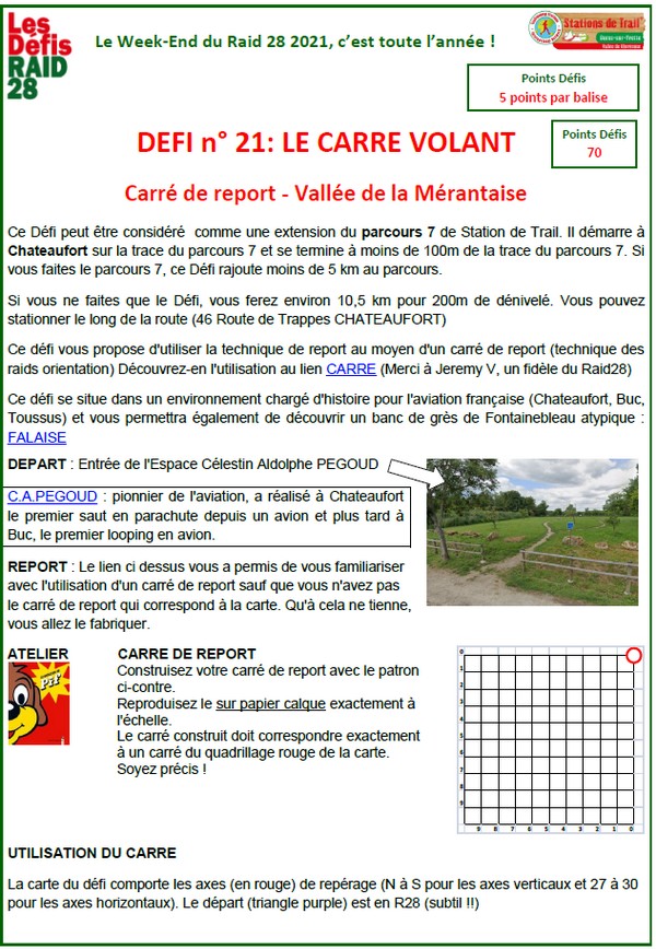 21ème défi, et donc nouveau défi terrain. Pour ce défi on va devoir utiliser un carré de report, système de traçage souvent utilisé en raid orientation. Mais découvrons déjà tout ça