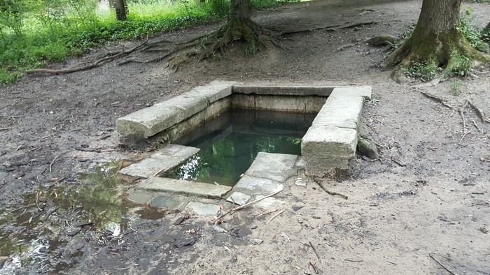 La fontaine étant indiquée sur la carte IGN la progression sera très simple et rapide. Une fois sur place je trouve la fontaine, puis je cherche le fameux tronc marqué. D'après la définition, j'en déduit que le code est OSSE