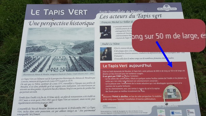 Je quitte l'intersection par le chemin direction sud-ouest jusqu'à la route forestière puis je passe au bout du "tapis vert". Conformément aux instructions, je relève la largeur du tapis vert comme indiqué dans la vignette.