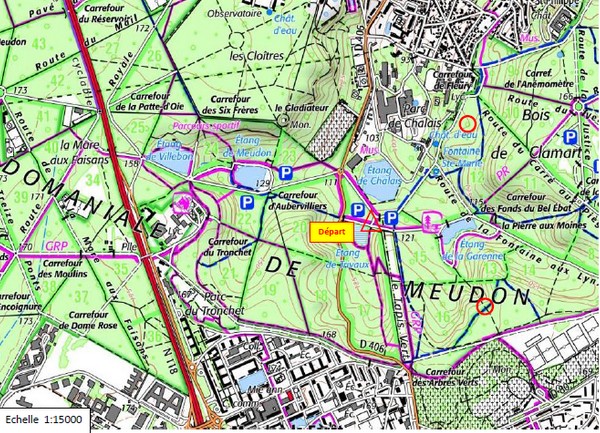 Celle là va me donner un peu de fil à retordre car j'ai un peu de mal à me caler entre la carte IGN et l'extrait de carte de CO de la vignette. Finalement je vais m'appuyer sur le réservoir en contrebas pour pouvoir aller chercher le rentrant où se trouve la balise
