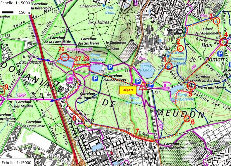 Je me gare sur le parking à proximité du départ proposé par l'organisation avec dans l'idée de prendre cette fois les balises dans l'ordre logique à savoir 1 à 8 puis terminer par 26, 27 et 28