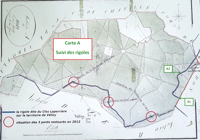 3 cartes anciennes permettant de suivre l'ancien tracé des rigoles