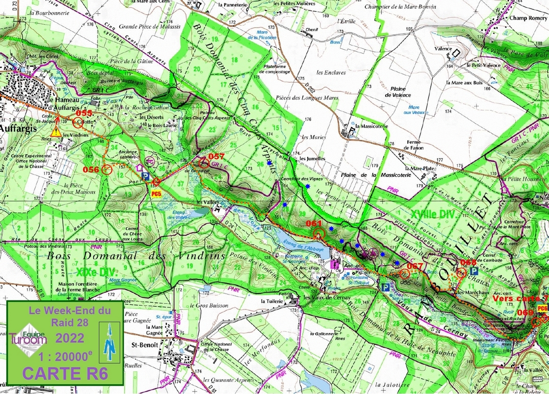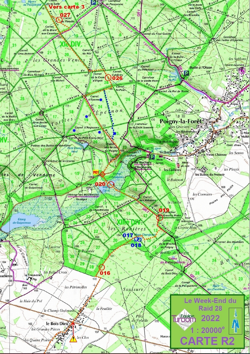 L'accès au PC va se faire via une longue traversée de champs, mais par chance il n'y a pas de vent. C'est d'ailleurs le cas depuis le début du raid. S'en suit la reprise en forêt, mais toujours en suivant le PNR ce qui évite les risques d'erreur grâce au balisage. Le PC se situe au passage sous la D906
